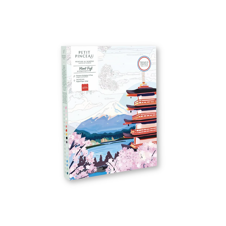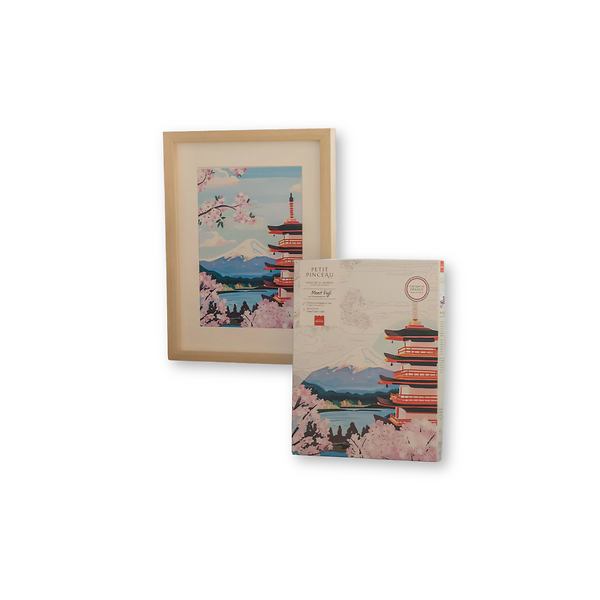 Dive into a moment of calm with the Petit Pinceau Creative Kit - Mount Fuji. This paint-by-number invites you to paint a serene Japanese landscape step by step, between a deep blue sky and blooming cherry trees at the foot of Mount Fuji. Perfect for relaxing and letting your creativity flow, this kit is made in France and offers a complete and refined artistic experience. A perfect gift for art lovers, Japan enthusiasts, and fans of zen moments.